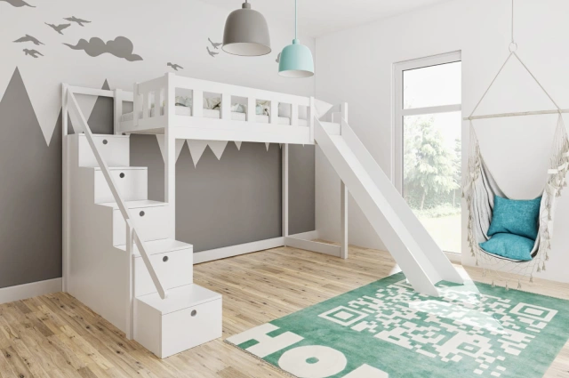 Hochbett MARCI mit Rutsche, optional mit Schubladentreppe