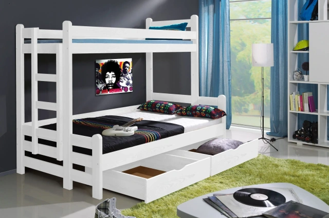 Alle Betten werden zusätzlich mit ökologischen Lacken geschützt, die sowohl für Kinder als auch für Erwachsene unbedenklich sind. Während des Entwerfens des Bettes achtete man nicht nur auf die Nutzungssicherheit, sondern auch auf seine Funktionalität und Ästhetik. Kiefer ist ein perfektes Material, das alle Anforderungen erfüllt. Die Robustheit dieses Materials ist enorm wichtig, wenn wir es mit hohen Betten zu tun haben. Solche Konstruktionen können gefährlich sein, deswegen ist die Qualität des verwendeten Materials von großer Bedeutung. Wir achten darauf sehr und kontrollieren streng alle Abschnitte des Produktionsprozesses. Komfort und maximale Raumnutzung sind mit Sicherheit große Vorzüge. Man sollte alles tun, damit sie sicher sind.